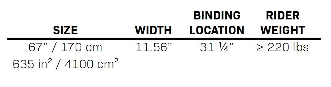 - Ski Size: 67” / 170 cm, 635 in² / 4100 cm²